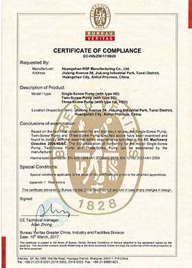 螺桿泵綜合性能實(shí)驗(yàn)裝置評(píng)定證書(shū)(1級(jí))